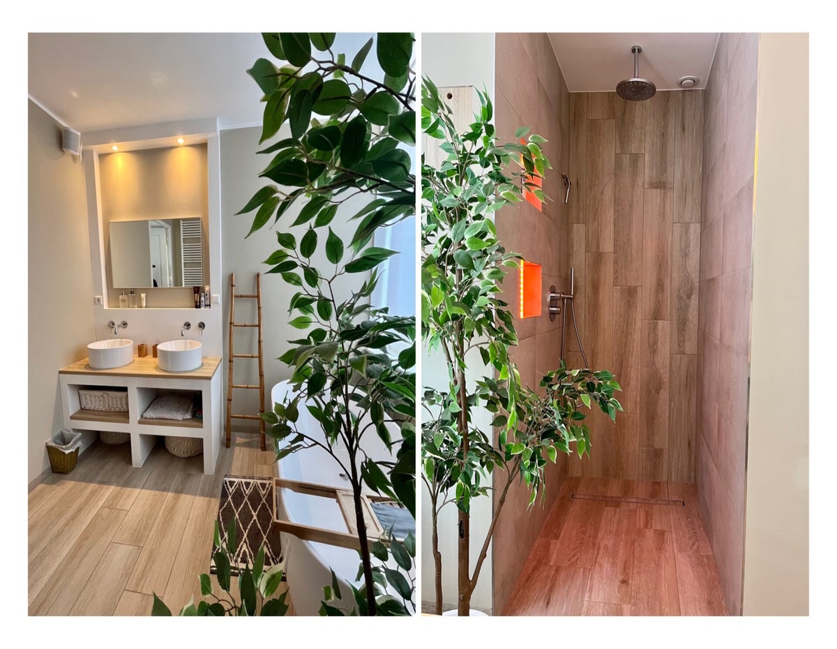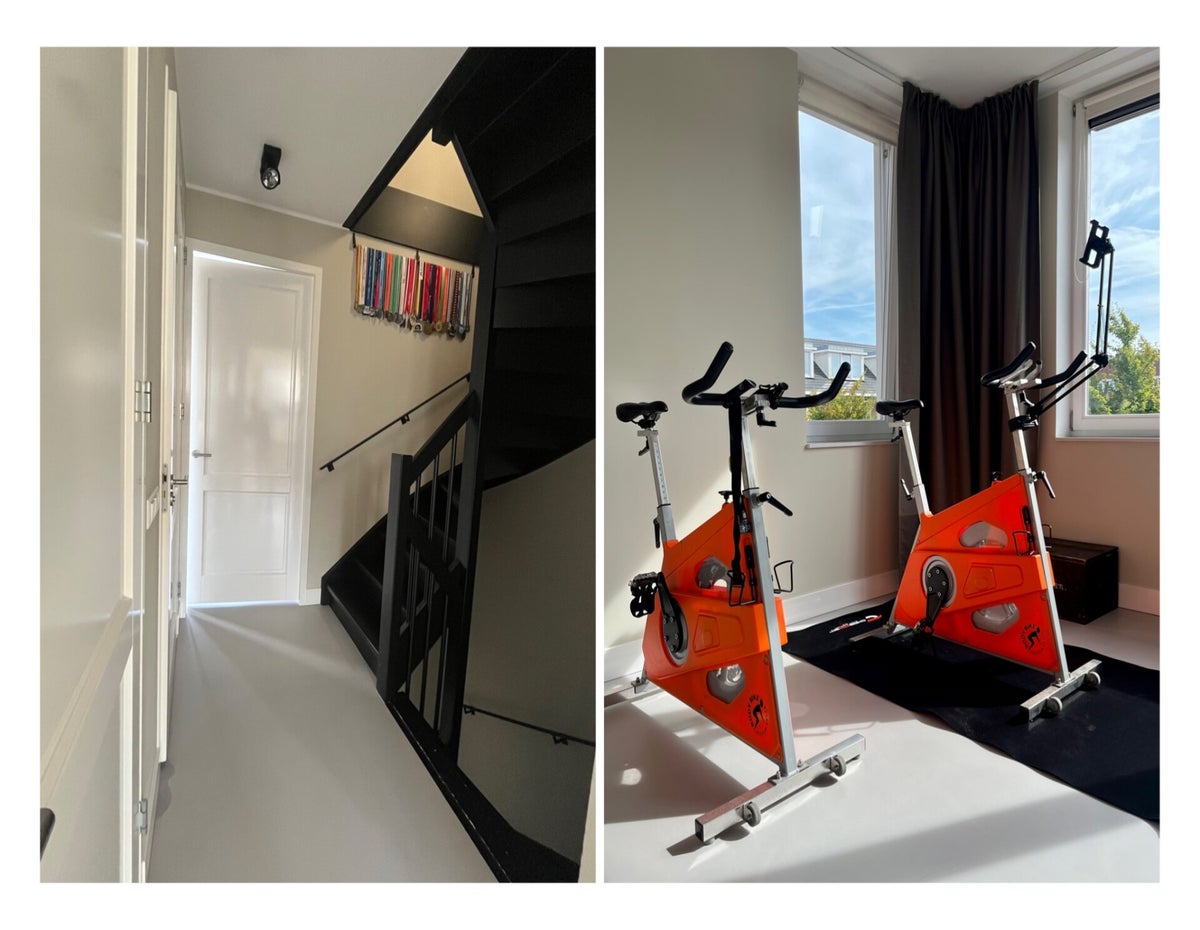 Via de overloop, toegang tot twee ruime slaapkamers, waarvan er 1 momenteel als sportkamer is ingericht. Er bevindt zich een schitterende inloopkast. Via de overloop toegang tot de luxe en moderne badkamer en is voorzien van een ruime regen- inloopdouche, dubbele wastafelmeubel met bad en een aparte w.c.